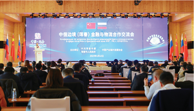 1月12日上午, 由珲春市委、珲春市政府、中国产业海 外发展协会共同主办,以“推动跨境金 融物流合作、惠及中俄边贸快速发展” 为主题的中俄边境(珲春)金融与物流 合作交流会在珲春市举行。