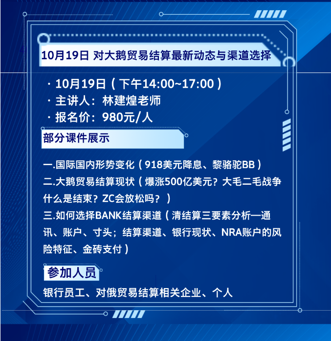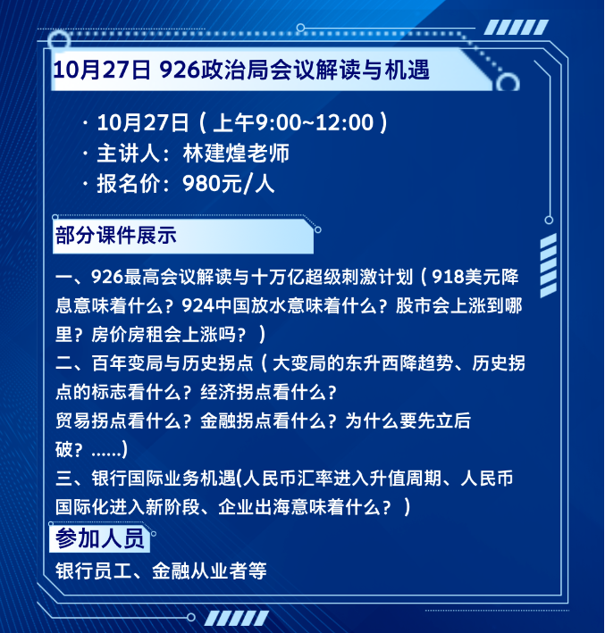 →报名咨询:附微信发送的报名登记信息模板6要素:(一)单位全称:(二)需求解决:(三)参会姓名:(四)部门职务:(五)联系电话:(六)电子邮件:咨询了解更多,可微信扫码添加客服沟通: 天九湾产业金融贸易研究汇 通九湾商务(咨询)上海有限公司 2024年10月