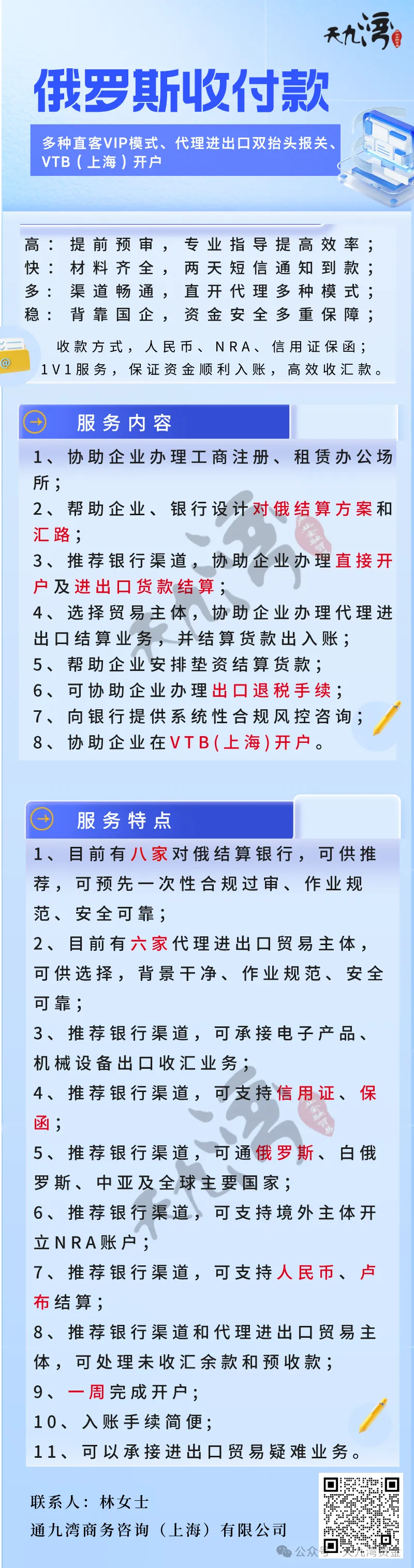 VTB开户通常需要提前预约,排队等待审核到成功开户的周期,一般为3-4个月。天九湾根据企业和个人的需求,灵活提供VTB开户服务。